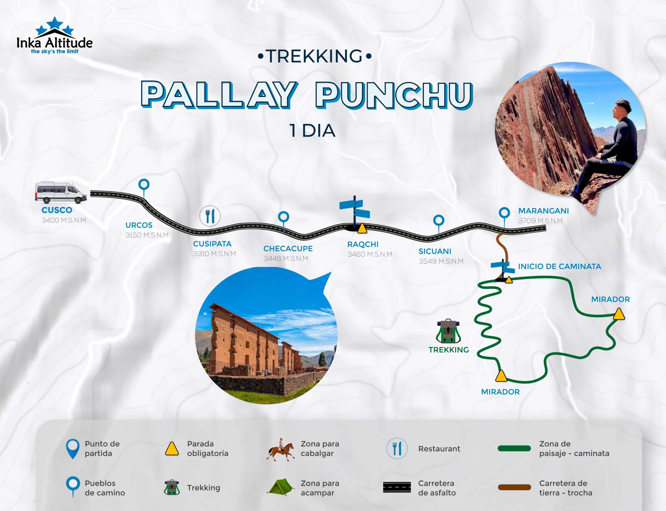 La caminata es de 3 a 4 km (aprox. 1 hora de subida) hasta el mirador de Pallay Punchu. Se recomienda buena condición física y aclimatación previa en Cusco.